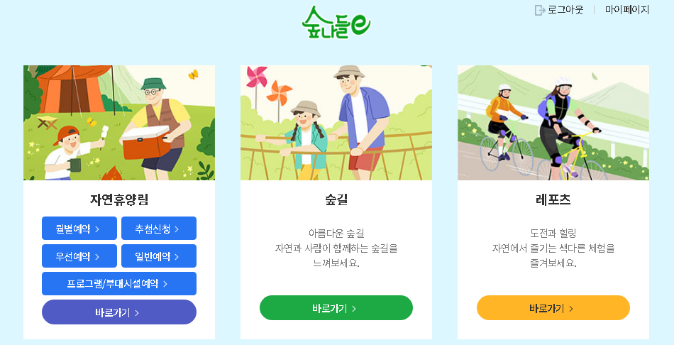 국립 자연 휴양림 예약하기