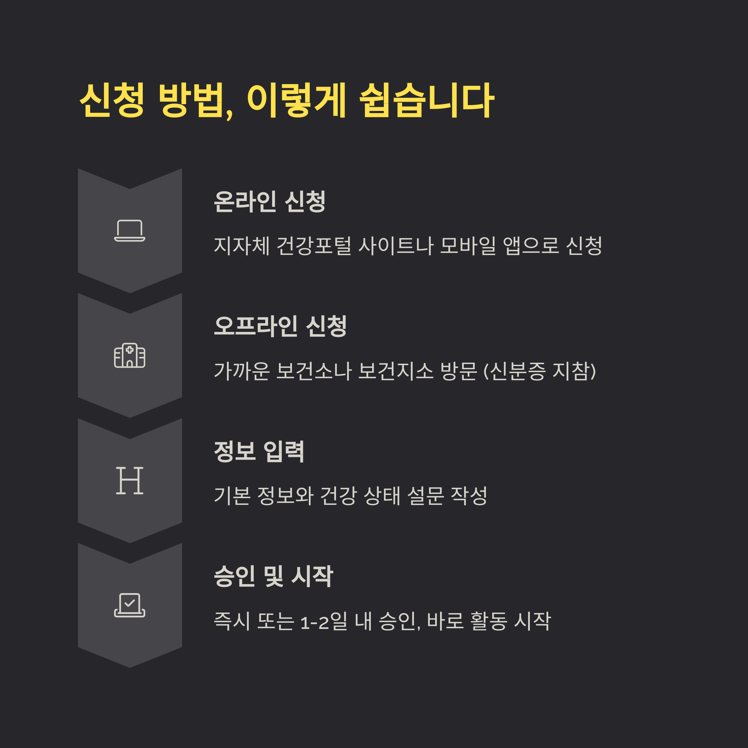 오프라인 신청을 원하는 분들은 가까운 보건소나 보건지소를 방문하면 돼요. 직원들이 친절하게 도와주기 때문에 인터넷 사용이 어려운 어르신들도 쉽게 신청할 수 있어요. 신청할 때 필요한 서류는 신분증과 주민등록등본 정도예요. 일부 지역에서는 건강보험증도 함께 가져가시면 더 빠르게 처리할 수 있어요.