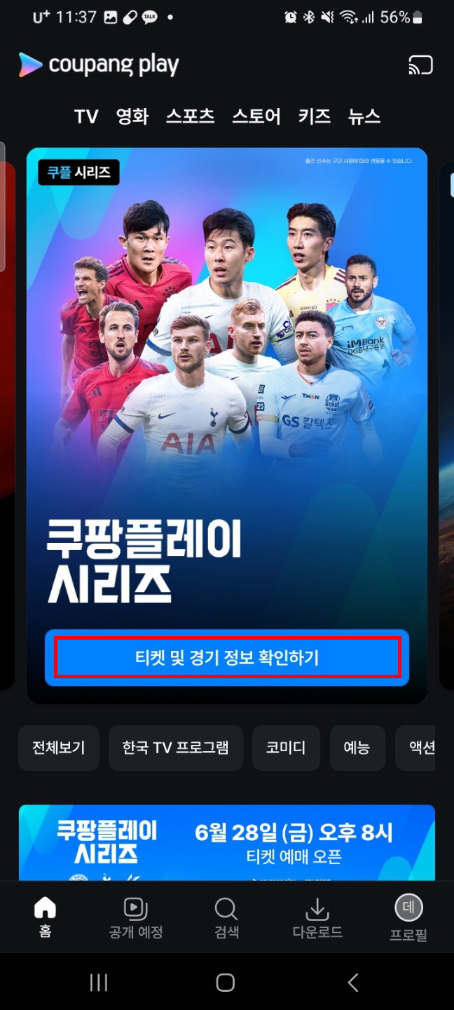➡️토트넘 훗스퍼와 바이에른 뮌헨의 경기를 위한 티켓팅과 알림 서비스는 쿠팡플레이 앱을 통해서만 가능합니다. 아래에 티켓팅 방법을 꼭 확인해 보세요.